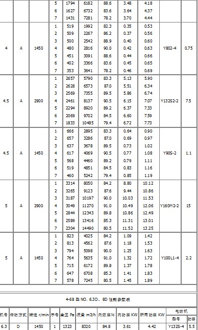1、本風(fēng)機(jī)制成單吸入,機(jī)號(hào)有:№2.8、3.15、3.55、4、4.5、5、6.3、8、10、12.5、16、20等十二個(gè)機(jī)號(hào)。