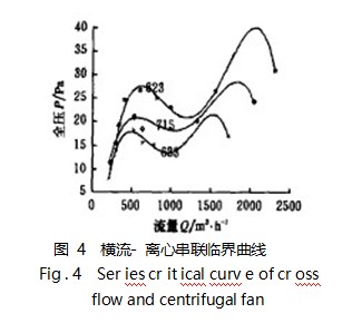 (1)聯(lián)臨 界曲線的 形狀非 常相似, 橫 流風(fēng)機(jī) 轉(zhuǎn)速 越高 串聯(lián)臨 界點(diǎn) 的位置亦越高; 對(duì)某一轉(zhuǎn) 速下的串 聯(lián)臨界曲線 來說, 隨 著工況阻 力