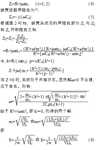 ( 2) 短管體積遠小于腔體體積, 即 Sli<<V( i=1, 2) 。