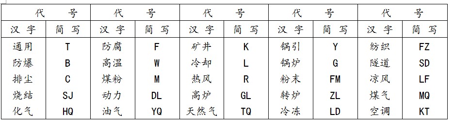 常用風(fēng)機(jī)用途代號