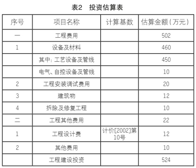 本工程投資包括曝氣系統(tǒng)技術(shù)改造范圍內(nèi)的建、構(gòu)物、工藝設(shè)備及管線安裝,電氣、自控系統(tǒng)工程及拆除修復(fù)工程,總投資估算為524萬(wàn)元,見(jiàn)表2