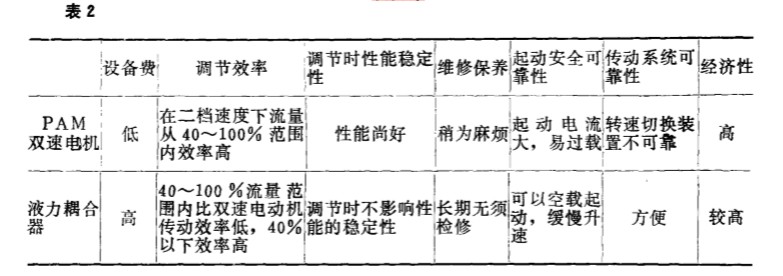 1 . 各種轉(zhuǎn)速控制方法的比較分 析 改變 轉(zhuǎn)速調(diào) 節(jié)流量過程中, 風(fēng)機(jī)將始終具有最佳的效率 。 而風(fēng)機(jī)的軸功率則按與轉(zhuǎn)速三 次方的規(guī)律而變 化 。 因而 , 就能 量使用觀 點(diǎn)來看 , 轉(zhuǎn)速 調(diào) 節(jié)是最合理 、 經(jīng)濟(jì) 。 在我 國 , 目前電站風(fēng)機(jī)的傳動 電機(jī) 絕大多數(shù)為交 流 電動 機(jī) , 而 以功率為基礎(chǔ)的交 流調(diào)速 傳動被認(rèn)為是風(fēng) 機(jī)節(jié)電最有效的方法 。 交流調(diào)速傳動方式很多 , 其分類如 表 1 。 由表 1可知 , 從取得最大節(jié)能效果的觀點(diǎn)出發(fā) , 當(dāng)然應(yīng)該選用高效控制裝置 。 然而 根據(jù)控制裝置的技術(shù)成 熟程度 、 維修保養(yǎng)的難易以 及對一次投資和運(yùn)行費(fèi) 用進(jìn)行綜合分析 , 比較切實(shí)可行的風(fēng)機(jī)變 速調(diào) 節(jié)方式主要有兩種: 即PA M 雙速 電機(jī)和調(diào) 速型液力禍合器 。