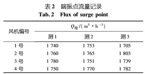 表 2 中平均流量為 1 757. 3 m3 /h. 考慮到運(yùn)行 時(shí)的流量波動(dòng),為保證安全,計(jì)算喘振控制點(diǎn)流 量[13]為 Q控 =1 757. 3 ×( 1 +8%) = 1 897 m³ /h,即喘振控制點(diǎn)流量為 1 900 m3 /h. 在風(fēng)機(jī)喘振報(bào)警 裝置中重新設(shè)置喘振控制點(diǎn)流量為1 900 m3 /h.
